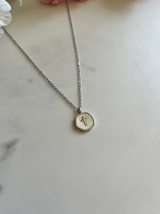 Silver Necklace Pearl Cross Pendant - Hypoallergenic and Timeless