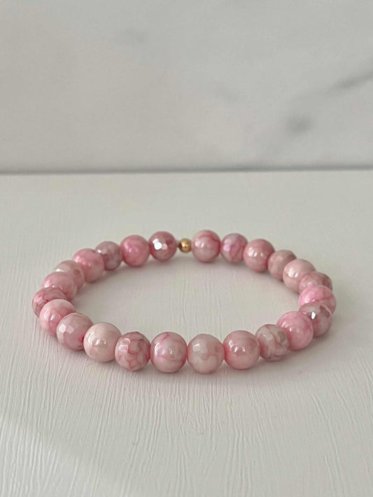 Pink White Marbled Bead Bracelet Handmade Jewelry