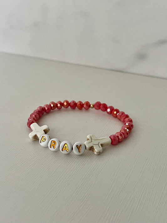Pray Red Faceted Beaded Bracelet | Handmade Christian Jewelry
