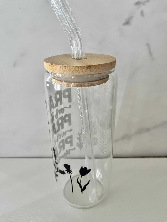 Pray Glass Tumbler with Straw & Cleaner | 22oz Faith-Inspired Drinkware