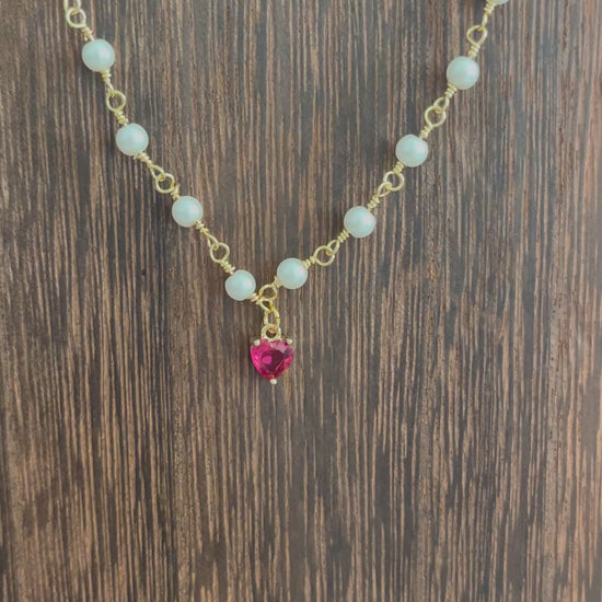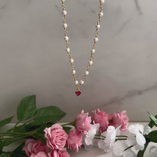 Gold Heart Necklace with Freshwater Pearl – 18K Heart Pendant