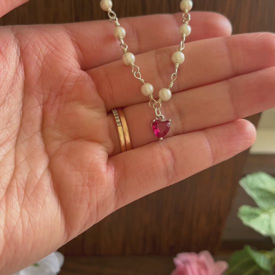 Silver Pearl Heart Necklace Handmade Christian Jewelry